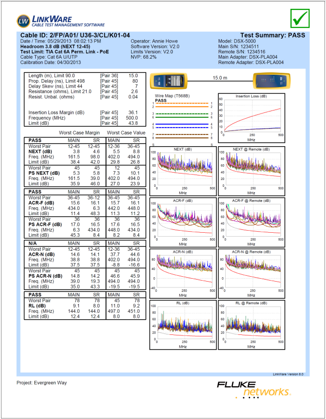 Le DSX certifie le câblage cuivre et est conforme à toutes les normes, y compris la précision de niveau VI/2G, ce qui simplifie la gestion des tâches et accélère l’acceptation du système. Il n’est pas réservé aux techniciens experts et aux chefs de projet.