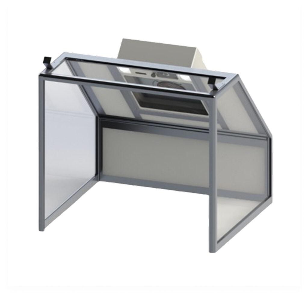 Nos cabines standard, démontables et faciles à déplacer peuvent s’installer sur un établi et recevoir un bac de rétention pour produits dangereux (en option).