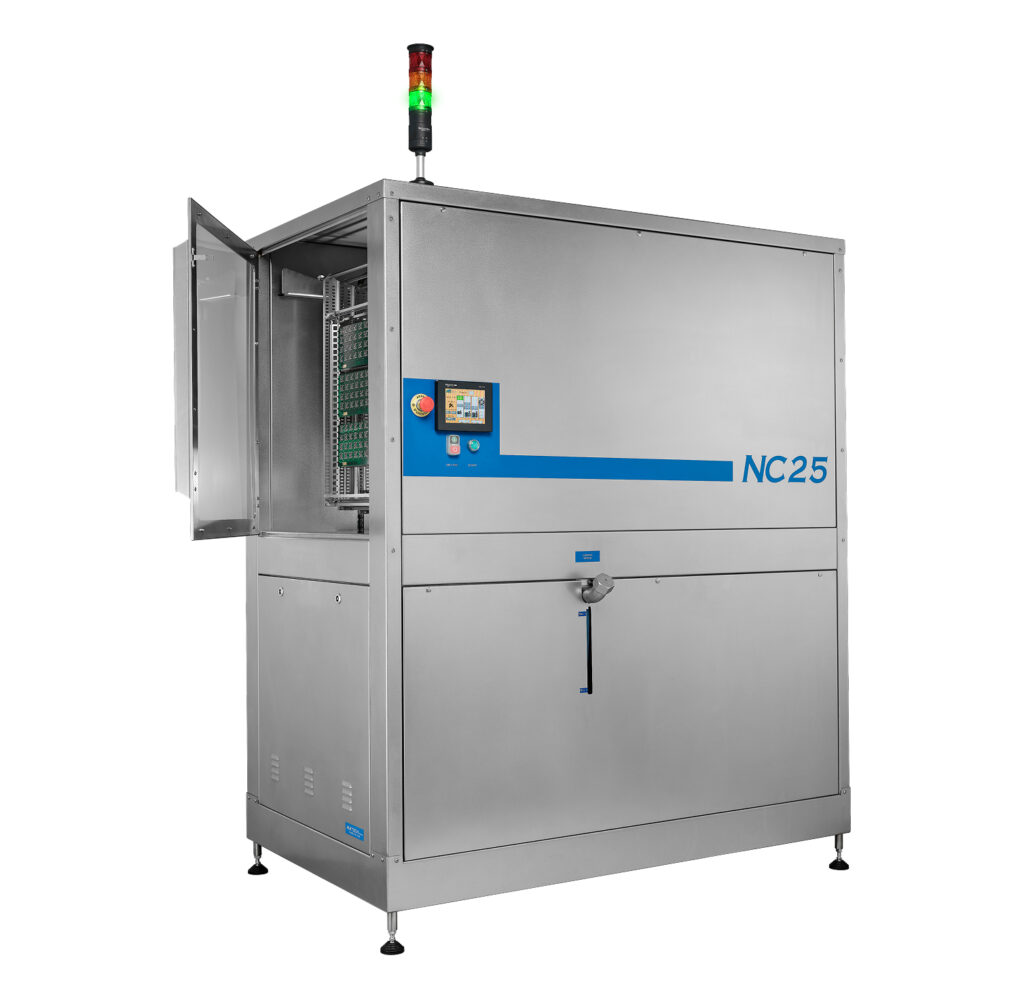 Machine compacte de nettoyage industriel, idéale pour l’élimination rapide des résidus de flux et de particules sur les cartes électroniques. Efficace, fiable et facile à utiliser.