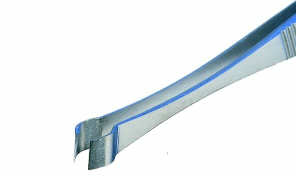 Tweezers designed for bending and straightening wires and small pins.