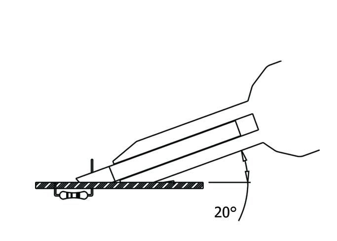 Pneumatic tool. 60° angled end flush cut. Ideal for hard-to-each areas. Lever activation. Several different spare blades available on request.