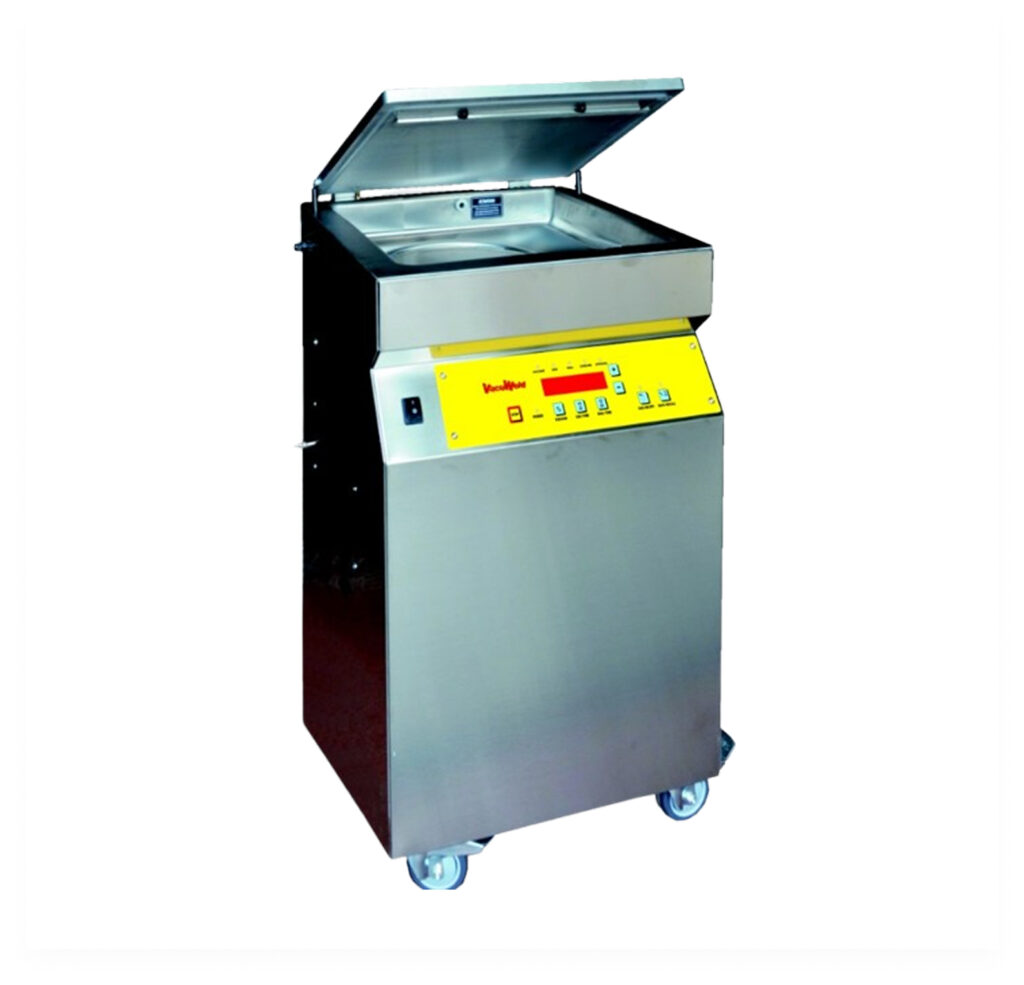 La ligne VACUWELD, conseillée dans les zones EPA, a été spécialement étudiée pour éviter la formation de charges statiques : structure en acier inox, capot en aluminium, roues conductrices. Programmation digitale du vide (Vacuum %), avec contrôle par un capteur placé dans la chambre de mise sous vide.