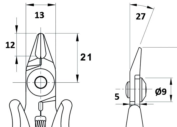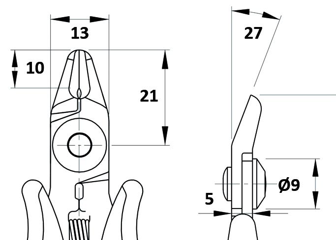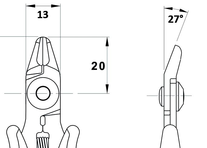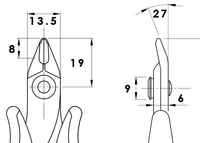 Bevelled-edge cutter. Shorter and more resistant head. Steel thickness 3 mm. Tool length 138 mm. Grip model St.
